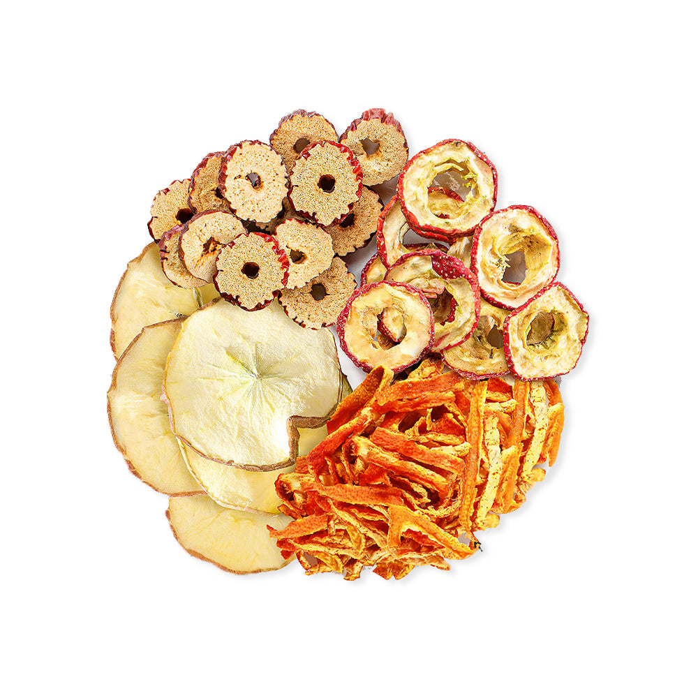 This vibrant fruit tea combines sun-dried apples, red dates, hawthorn, and tangerine peel to create a tangy-sweet infusion that supports your wellness journey through traditional benefits: